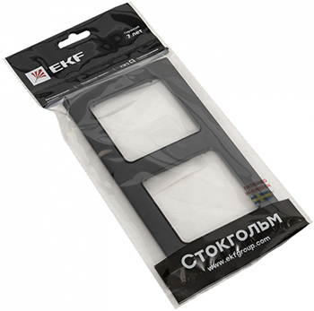 Рамка двухпостовая EKF EXM-G-303-30 "Стокгольм" (IP20), черный