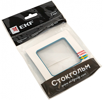 Рамка однопостовая EKF EXM-G-304-30 "Стокгольм" (IP20), белый / синий