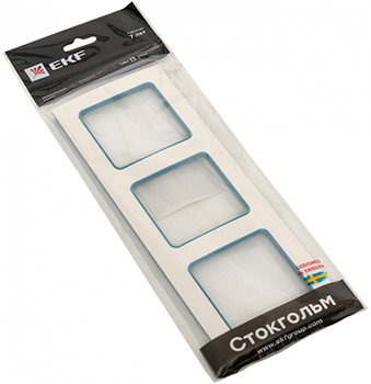 Рамка трехпостовая EKF EАM-G-304-30 "Стокгольм" (IP20), белый / синий