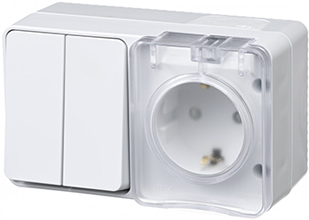| Тип изделия | блок: выключатель 2х1-полюсный + розетка силовая (штепсельная) с заземляющим контактом и защитными шторками |