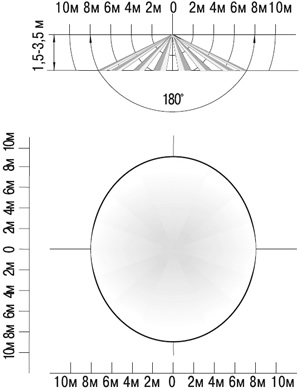 - Контроль передвижения объектов не только в зоне прямой видимости, но охват всего пространства вокруг датчика.