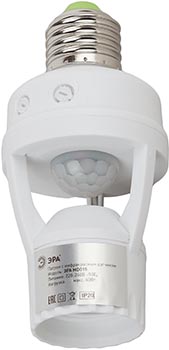Инфракрасный датчик-патрон MD 015 "Эра" имеет угол обзора 360 градусов, улавливает движение на расстоянии 6 метров.