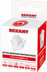 Датчик движения микроволновый ДДТМ 01 Rexant 11-9219 (1200 Вт, дальность обнаружения 10 м, угол обзора 360°, IP20) скрытой установки, белый