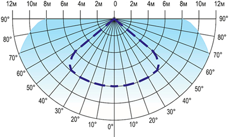 - Наибольшую чувствительность датчик движения имеет, когда движущийся объект перемещается перпендикулярно лучам зоны обнаружения.