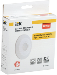 Датчик движения ДД-026 IEK LDD11-026-2000-001 (2000 Вт, 6 м, 360°, IP20) открытой установки, белый