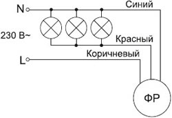 - коричневый провод - подключение фазы (L);