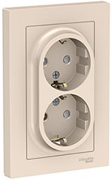 Розетка двухместная Schneider Electric ATN000226 AtlasDesign (16 А) скрытой установки, с заземлением и защитными шторками, бежевый