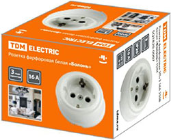 Розетка одноместная "Болонь" TDM SQ1820-0007 (16 А, IP20, фарфор) открытой установки, с заземлением, белый
