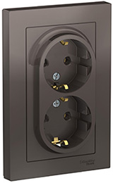 Розетка двухместная Schneider Electric ATN000624 AtlasDesign (16 А) скрытой установки, с заземлением, мокко