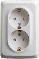 Розетка двухместная угловая Schneider Electric PA16-108B "Этюд" (16 А, IP20) открытой установки, с заземлением и защитными шторками, белый