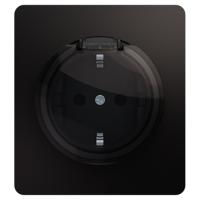 Розетка одноместная Kranz KR-78-0702-3 Miele Round (16 А, IP20) с заземлением и защитными шторками, с крышкой, скрытой установки, оникс