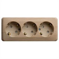 Розетка трехместная Schneider Electric PA16-012D "Этюд" (16 А, IP20) открытой установки, с заземлением и защитными шторками, сосна