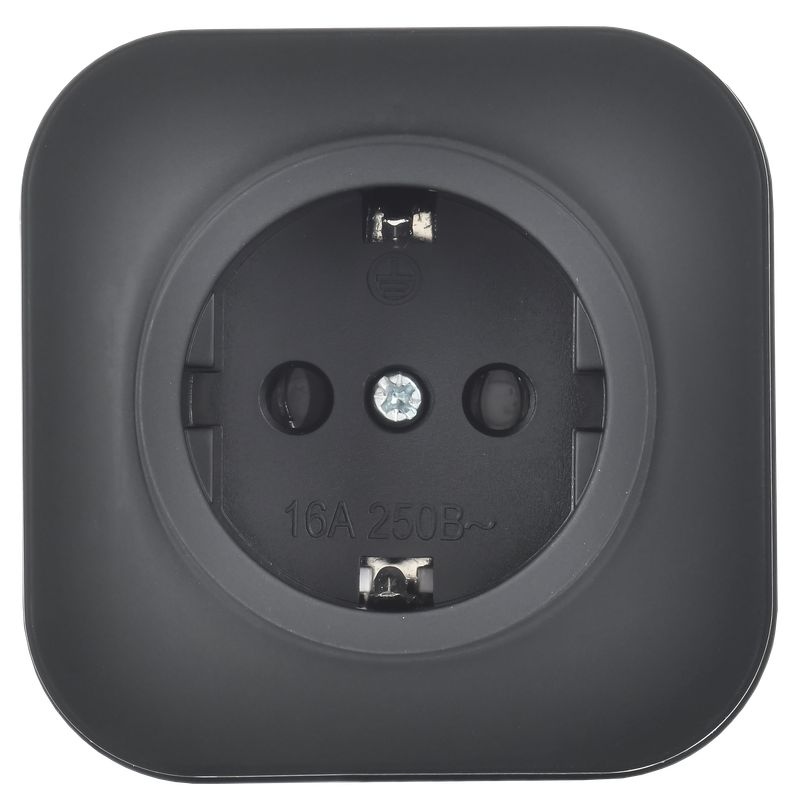 Розетка одноместная IEK РС20-3-ХЧм Glory (16 А, IP20) открытой установки, с заземлением, черный матовый