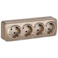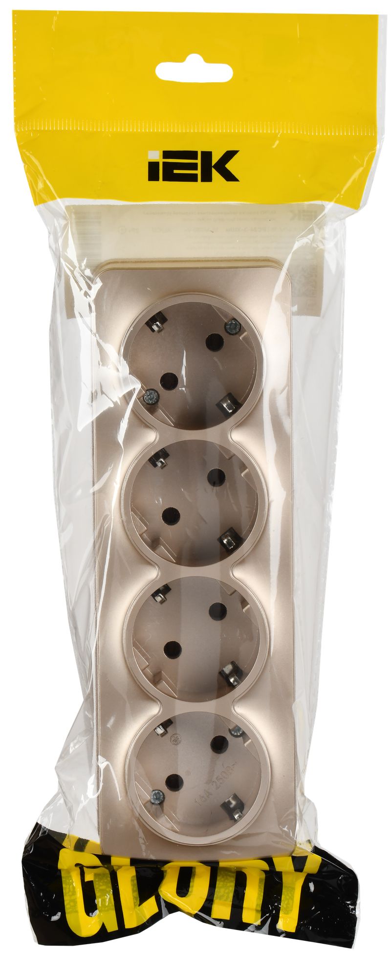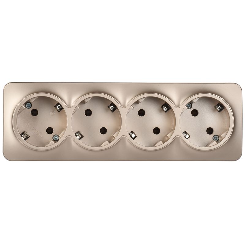 Розетка четырехместная IEK РС24-3-ХШм Glory (16 А, IP20) открытой установки, с заземлением, шампань матовый