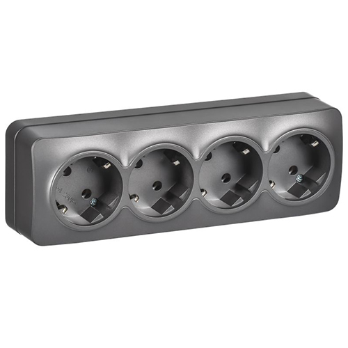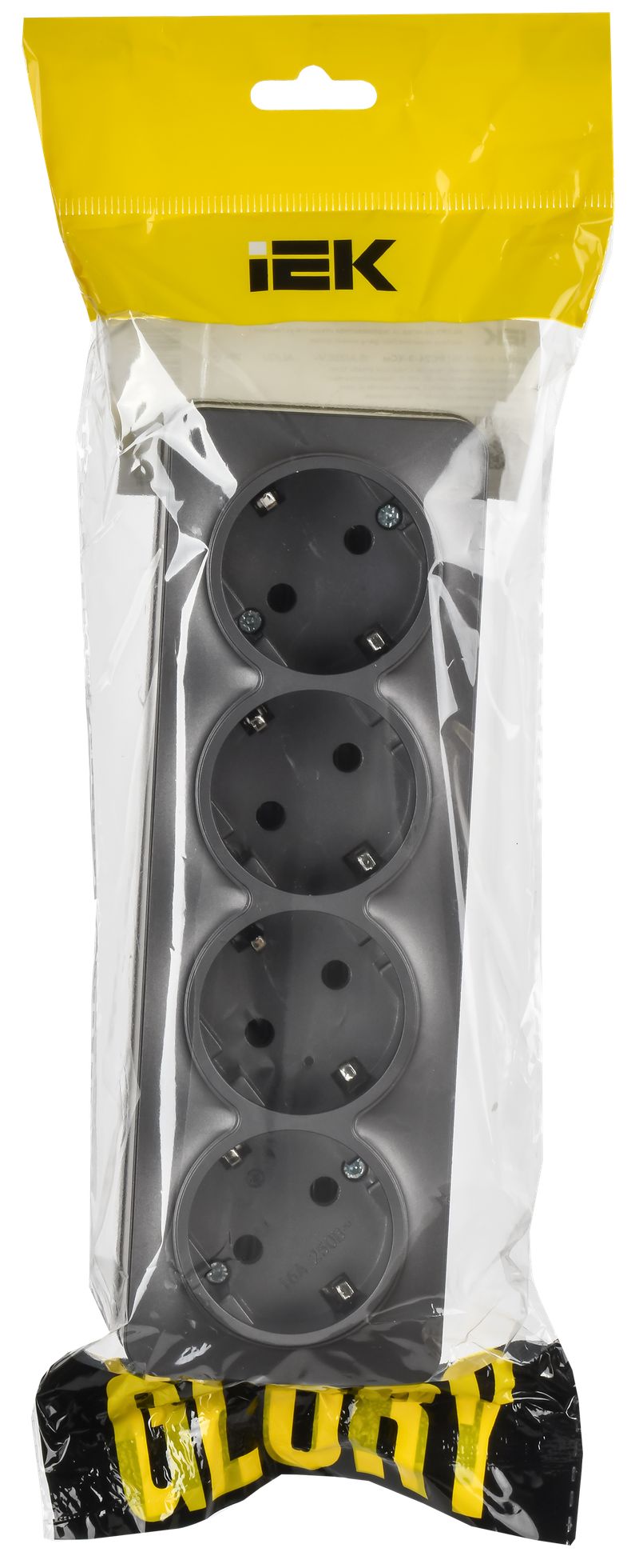 Розетка четырехместная IEK РС24-3-ХСм Glory (16 А, IP20) открытой установки, с заземлением, сталь матовый