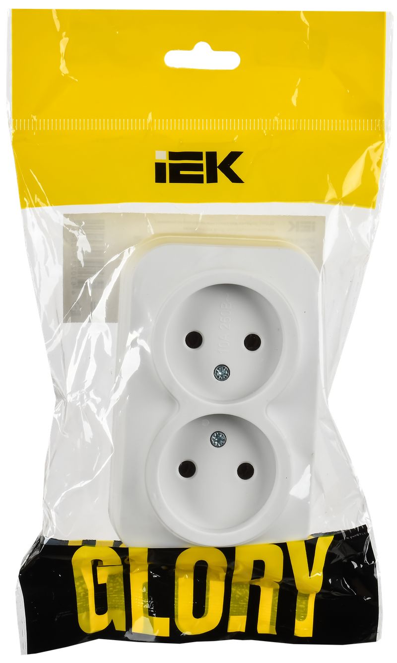 Розетка двухместная IEK РС22-2-ХБм Glory (10 А, IP20) открытой установки, белый матовый