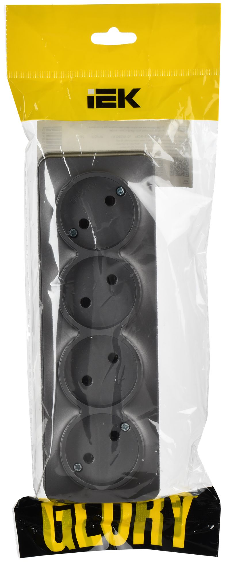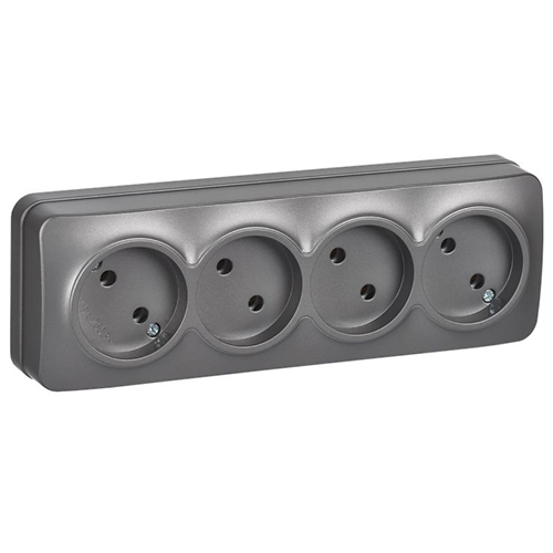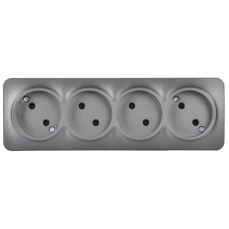 Розетка четырехместная IEK РС24-2-ХСм Glory (10 А, IP20) открытой установки, сталь матовый