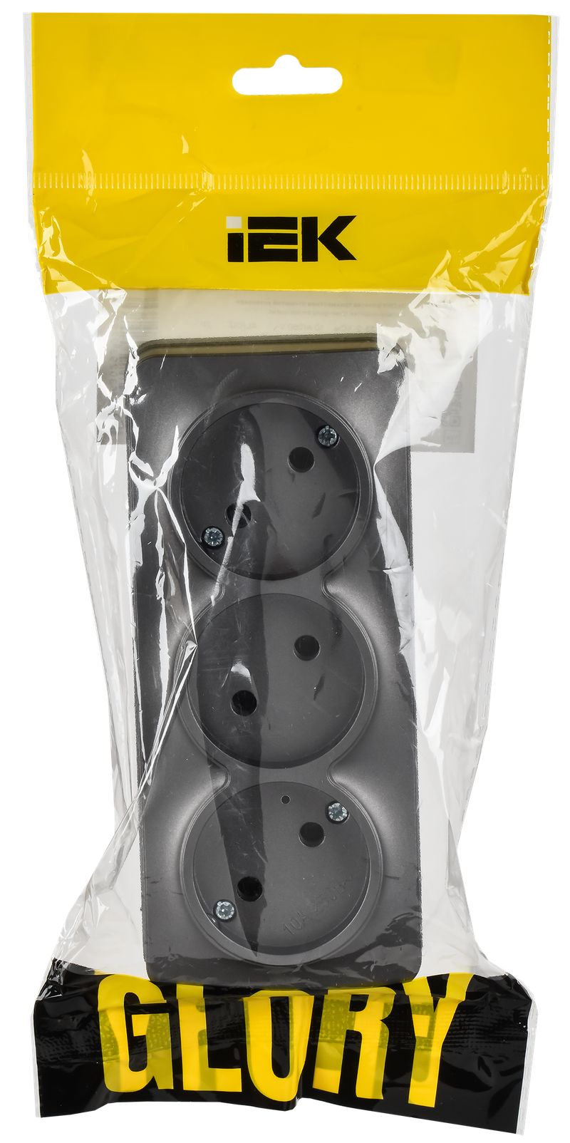 Розетка трехместная IEK РС23-2-ХСм Glory (10 А, IP20) открытой установки, сталь матовый