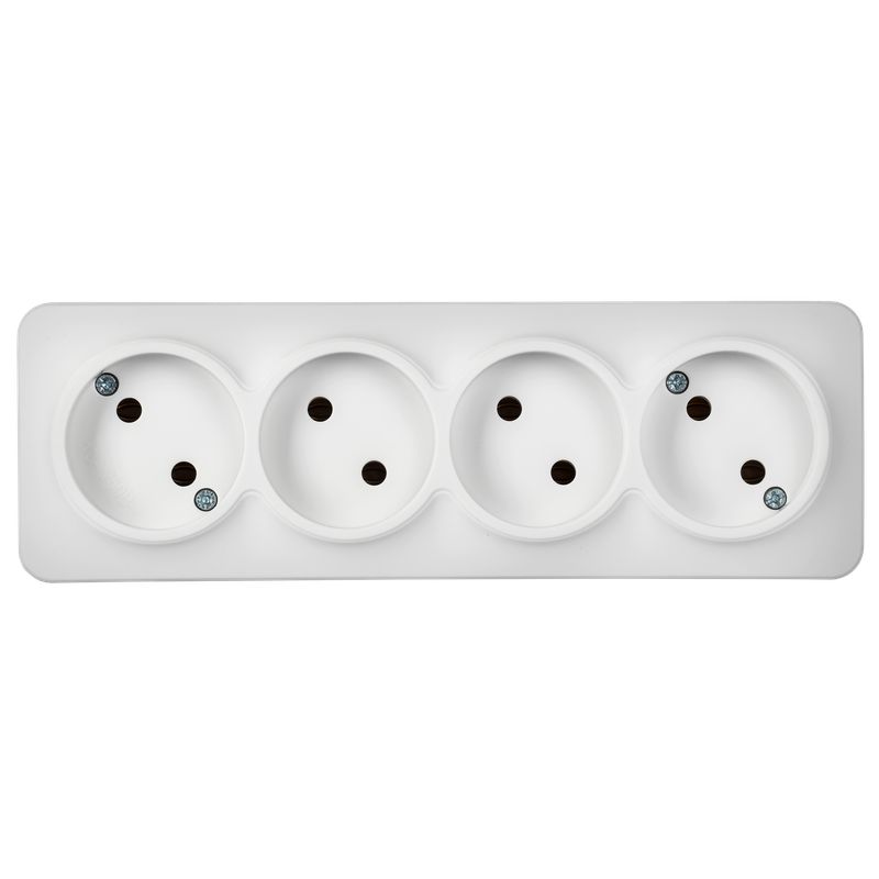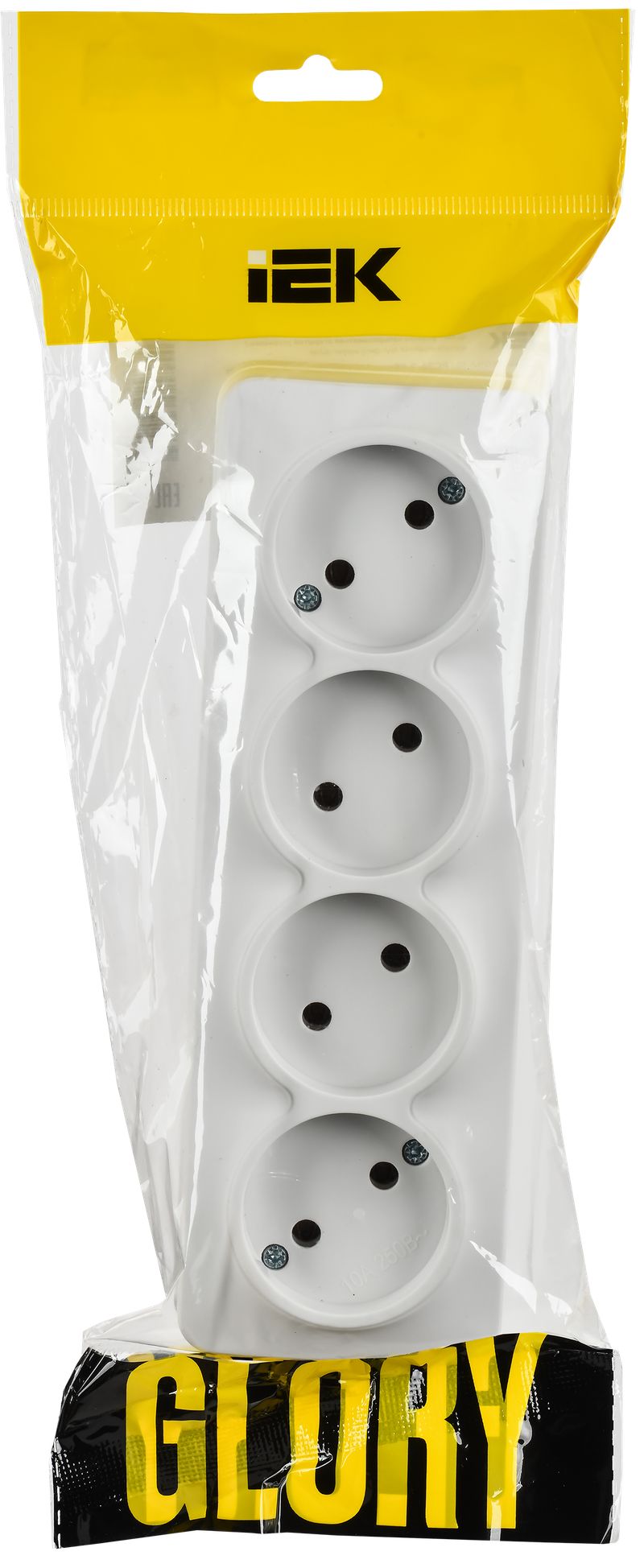 Розетка четырехместная IEK РС24-2-ХБм Glory (10 А, IP20) открытой установки, белый матовый