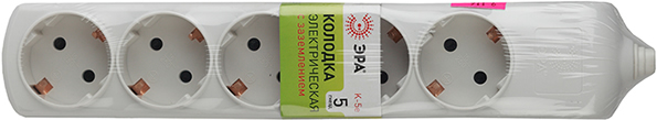 Колодка электрическая 5-местная K-5e "Эра" (16 А, IP20) с заземлением и защитными шторками, белый
