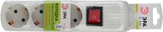 Колодка электрическая 5-местная K-3es "Эра" (16 А, IP20) с заземлением и шторками, с выключателем, белый
