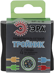 Разветвитель сетевой четырехместный SP-4-B "Эра" (16 А), черный