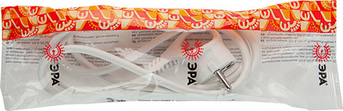 Шнур сетевой 3 м "Эра" UX-3x0,75-3m-W (10 А, 250 В, ПВС 3 x 0,75 кв.мм) с вилкой, белый