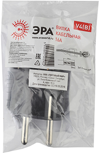 Вилка штепсельная прямая V4(B) "Эра" (16 A, IP20) с заземлением, черный