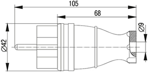 - Дополнительный буртик обеспечивает плотную фиксацию вилки в розетке и защищает от попадания влаги внутрь.