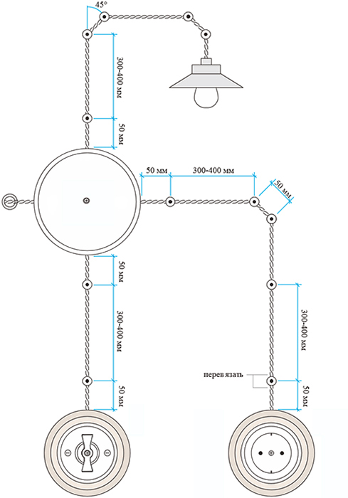 Применяется с открытой проводкой, хорошо сочетается с текстильным кабелем.