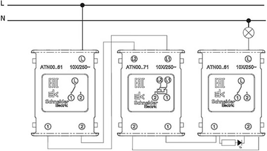 Переключатель одноклавишный перекрестный Schneider Electric ATN000471 AtlasDesign (10 АХ, IP20) скрытой установки, жемчуг