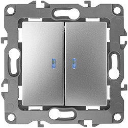 Выключатель двухклавишный 12-1105-03 "Эра 12" (10 АХ, 250 В, IP20), с подсветкой, алюминий