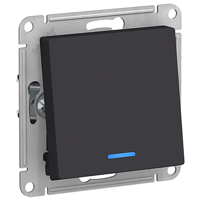 Переключатель одноклавишный Schneider Electric ATN001063 AtlasDesign (10 АХ) скрытой установки, с подсветкой, карбон