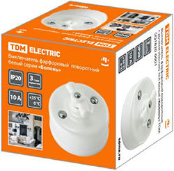 Выключатель поворотный "Болонь" TDM SQ1820-0001 (10 А, IP20, фарфор) открытой установки, с ручкой, белый