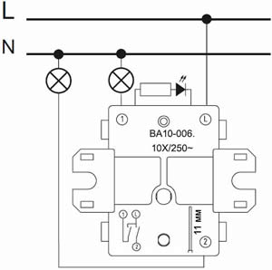 - Выключатели на ток 10 AX подходят для большинства типов ламп, включая люминесцентные.