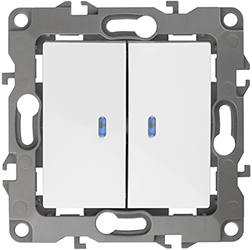 Выключатель двухклавишный 12-1105-01 "Эра 12" (10 АХ, 250 В, IP20), с подсветкой, белый