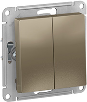 Выключатель двухклавишный Schneider Electric ATN000551 AtlasDesign (10 АХ) скрытой установки, шампань