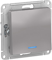 Выключатель одноклавишный Schneider Electric ATN000313 AtlasDesign (10 АХ) скрытой установки, с подсветкой, алюминий