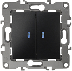 Выключатель двухклавишный 12-1105-05 "Эра 12" (10 АХ, 250 В, IP20), с подсветкой, антрацит