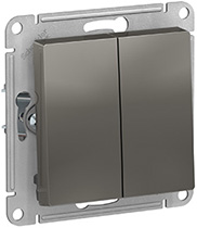 Выключатель двухклавишный Schneider Electric ATN000951 AtlasDesign (10 АХ) скрытой установки, сталь