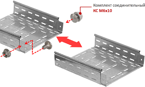 Комплект соединительный КС М6х10 применяется для соединения листовых лотков и аксессуаров между собой.