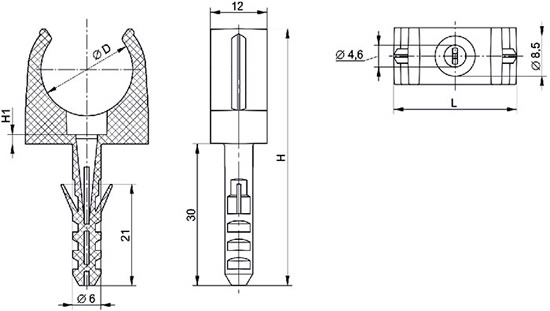 Держатель СТ16 с защелкой и дюбелем предназначен для крепления трубы ПВХ диаметром 16 мм.