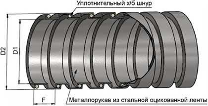 Наличие уплотнения не делает металлорукав герметичным, но позволяет использовать его в системах вентиляции и для транспортировки крупнодисперсных сыпучих веществ.