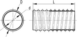 - Спиралевидный каркас из жесткого непластифицированного поливинилхлорида залит мягким пластифицированным ПВХ-пластикатом.