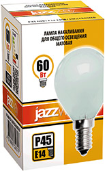 Лампа накаливания Jazzway P45 240V 60W E14 Frosted (шар, E14, 60 Вт, 550 лм), матовый