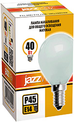 Лампа накаливания Jazzway P45 240V 40W E14 Frosted (шар, E14, 40 Вт, 350 лм), матовый