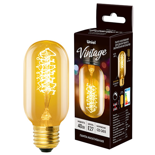 Лампы накаливания Uniel серии Vintage с фигурной светящейся нитью предназначены для декоративного освещения помещений, интерьерной и декоративной подсветки, акцентного освещения.