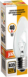 Лампа накаливания Jazzway B35 240V 40W E27 Clear (свеча, E27, 40 Вт, 380 лм), прозрачный