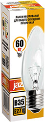 Лампа накаливания Jazzway B35 240V 60W E27 Clear (свеча, E27, 60 Вт, 580 лм), прозрачный