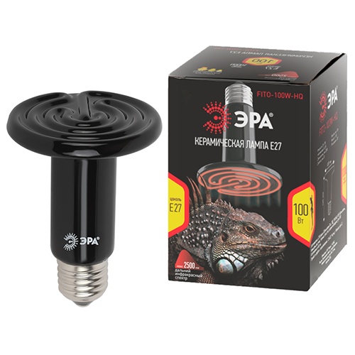 Нагреватель инфракрасный керамический "Эра" FITO-100W-НQ CeramiHeat (Е27, 100 Вт), модель RX для брудеров и рептилий